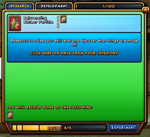 A player can only break down an item that matches their branch of crafting. To break an item down select Research at the crafting table. Click and drag, or right-click an item from your bag and it will appear in the Research window. An Experiment Score (ES) is displayed showing how much of an increase you will gain from this item. This is a scale of 0-5. The higher the Experiment Score, the more skill points you will gain (up to 10 skill points per Experiment at 5/5). You can drag multiple items into the window to boost your ES.